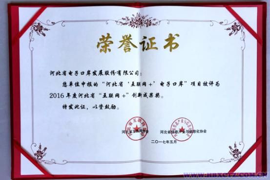 5月19日,河北省“互聯網+”創新成果表彰大會在廊坊舉行。表彰大會由河北省信息產業與信息化協會、河北省互聯網協會聯合主辦。河北省電子口岸平臺憑借著開放、創新、安全、高效的發展理念,并主動適應問題新常態,以及完善的用戶體驗,被評為2016年度河北省“互聯網+”創新成果獎。
