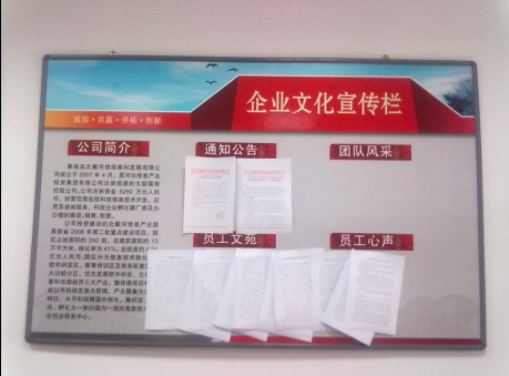 近期,為加強企業文化宣傳,北戴河信投高科公司設計制作了“企業文化宣傳欄”。宣傳欄分為公司簡介、通知公告、團隊風采、員工文苑、員工心聲五個板塊。在團隊風采板塊,公司將洗印張貼員工參加集體活動、獲得表彰等情況的照片;員工文苑板塊將張貼員工日常撰寫的生活感悟和工作技巧經驗的文章,供大家交流學習;員工心聲板塊將張貼員工對公司提出的合理化建議。 ????信投高科公司將充分發揮企業文化宣傳欄的作用,展現員工風采,凝聚員工力量,將企業文化宣傳建設工作做得更好。