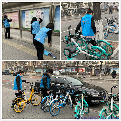 志愿者發揚“不怕苦、不怕累、不怕臟”的工作作風,扶起街邊傾倒的共享單車,清潔路邊指示牌活動。用實際行動傳遞文明精神,共做文明城市的守護者。