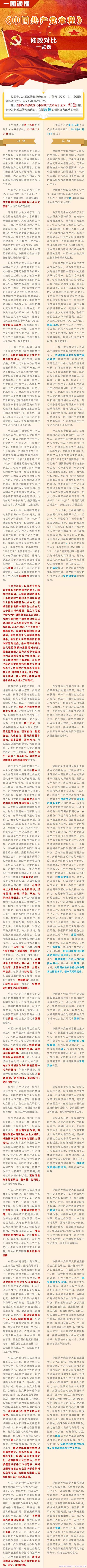 一圖讀懂《中國共產黨章程》修改對比一覽表
